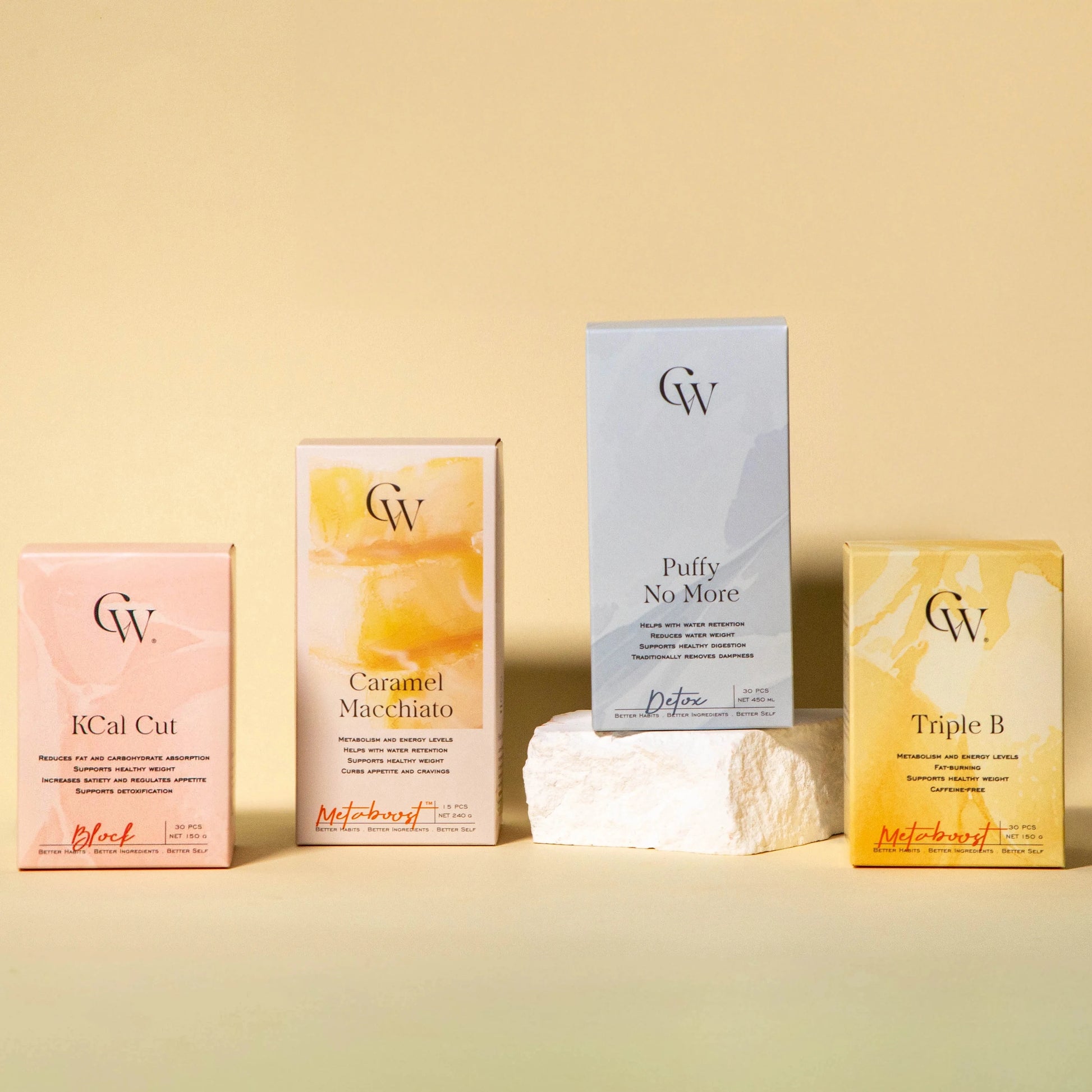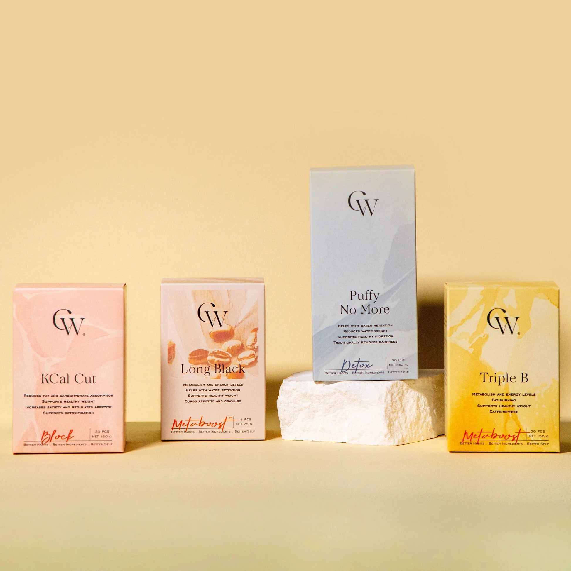 As part of the programme, you’ll also be guided on how to incorporate our functional drinks—KCal Cut, Triple B, Long Black/Caramel Macchiato, and Puffy No More—into your daily routine. A suggested schedule is included, making it easy to enjoy these products in the right way for maximum benefit.