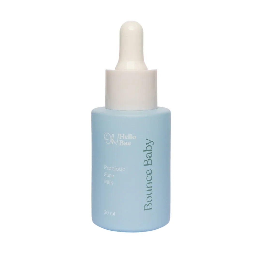 Our Bounce Baby Face Milk isn’t just a hydrating serum, it helps repair your compromised skin barrier too. Constant use of harsh facial cleansers and antibacterial soaps as well as exposure to sun and air pollutants can strip your skin of these healthy bacteria or the ‘good bugs’, eventually damaging your skin’s natural bacterial ecosystem and skin barrier. This can cause skin issues such as rashes, breakouts and premature wrinkles.